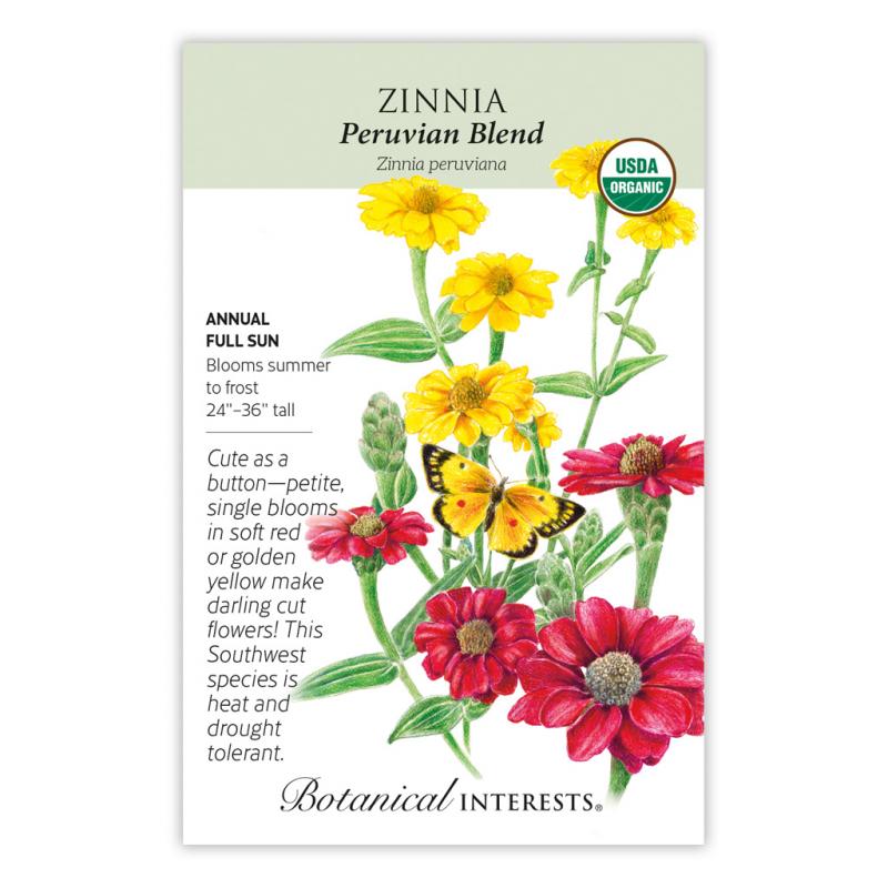 | Peruvian zinnias are cute as can be, and their simple, open, single flowers make excellent landing pads for all manner of pollinators. With origins in Arizona, Mexico, Central, and South America, they are adapted to hot, dry conditions. Peruvian zinnias were popularized in the 1800s, providing gardeners with carefree color for several months. Compact plants look great in containers or planted en masse, and their drought tolerance makes them appropriate for dry gardens. Long stems are excellent for all types of fresh or dried cut floral creations. Deer resistant. |