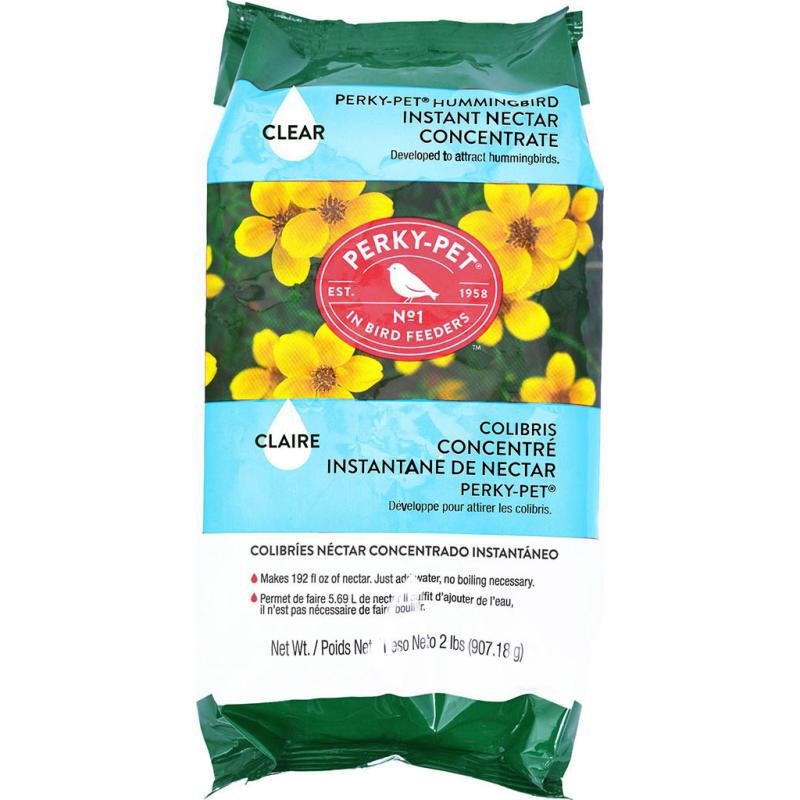| The Perky-Pet Original Instant Nectar is made of 100% sucrose, which provides the highest amount of energy to hummingbirds. This hummingbird nectar concentrate is so easy to use- simply stir in water. No artificial color or sweeteners added. No boiling required. 8 oz. makes 48 oz. |