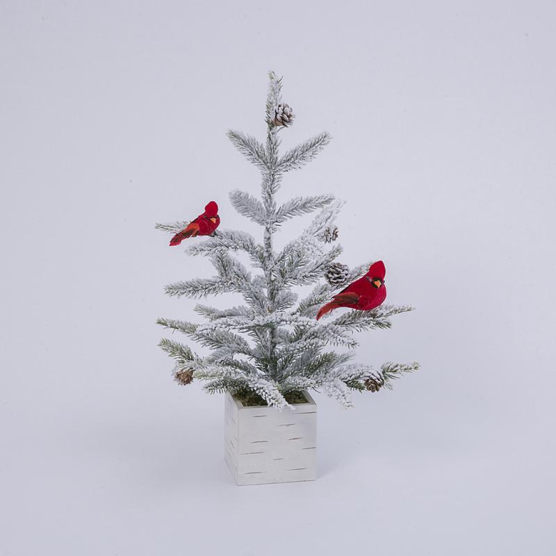 18"H Holiday Flocked Tree with Cardinal in Wood Box Item Dimensions: L6" x W6" x H4.5"