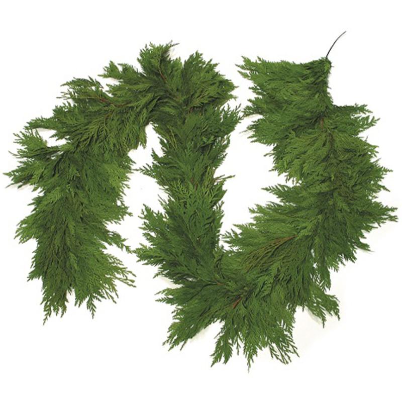 Description: The Western Red Cedar garland is 15 feet long and is the most economical of the West Coast cedars. Its boughs are long, flat, and dark green.