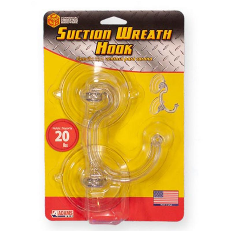 | The Adams double suction cups are designed to hang wreaths and decorations up to 20 lb securely on glass doors and windows. This item features an extra-large hook that holds wreaths without wire or string. It's designed with two giant suction cups that distribute weight evenly for a superior hold |