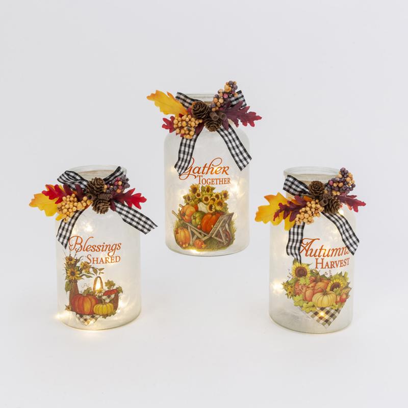 Gerson International B/O Lighted Frosted Glass Luminary w/black/White Ribbon