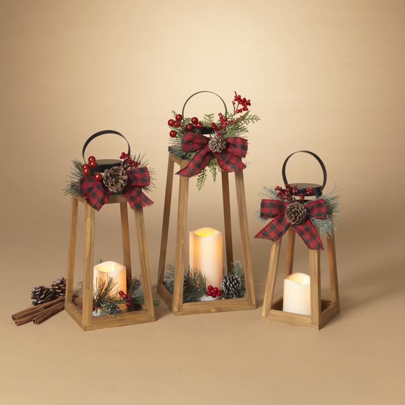 Gerson Battery Operated Lantern with Red / Black Bow Candle