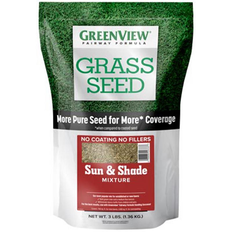 | GreenView Fairway Formula Sun & Shade Grass Seed Mixture provide a balanced variety for optimal performance in sun to partial shade. These type of seeds spread over time to form a thicker lawn. Approximate germination is 7 to 10 days. 3 lb. bag covers 750 sq. ft. for new lawns and 1,500 sq. ft. for overseeding. Contains: Charismatic II Perennial Ryegrass, Rodin Tall Fescue, Aberdeen Creeping Red Fescue and Wildhorse Kentucky Bluegrass. |