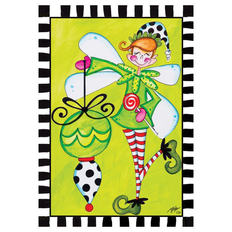 | This Merry Xmas Elf Garden Flag from Custom Decor welcomes you in the season. It is one of their gorgeous double-sided flags, proudly printed here, in-house in the USA! Each flag is printed using fade-resistant ink on luxurious, velvety, soft, heavyweight fabric, creating a beautiful drape showcasing its stunning design. |