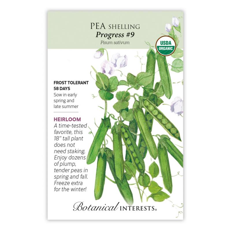 | Remember when you were a kid how fun it was to pop open a pod and eat the peas? Relive the memories and enjoy the wonderful taste of 'Progress #9'. Each 5" pod has 7-9 plump peas. A heavy producer, also called 'Laxton's Progress #9'. (Thomas Laxton was a renowned 19th century strawberry breeder.) Plants are resistant to common wilt disease. |