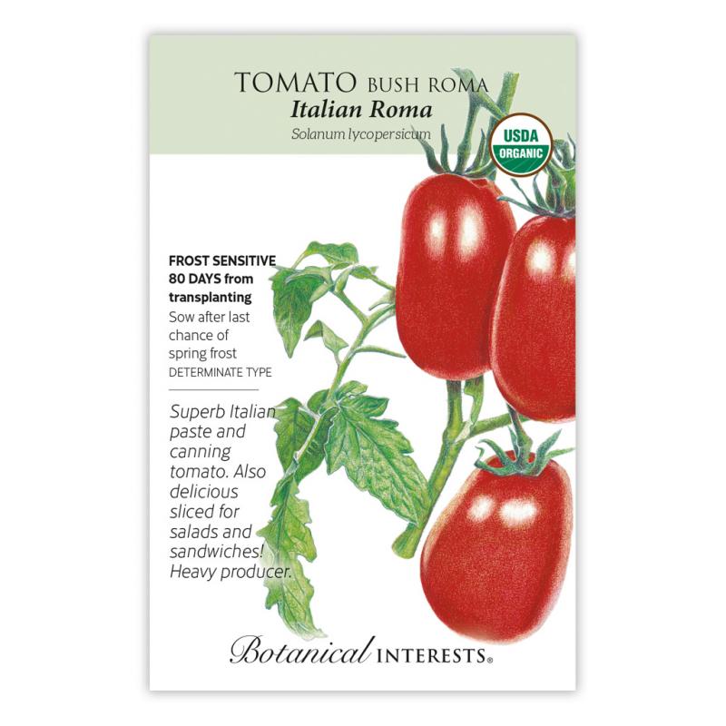 | An absolutely excellent heirloom tomato—firm, meaty, 3" oblong fruits with few seeds, on compact vines that are very productive. As a determinate type, most of the fruits ripen at the same time, which makes this tomato a good choice for canning. In areas with a long growing season, a second planting will double your harvest! |