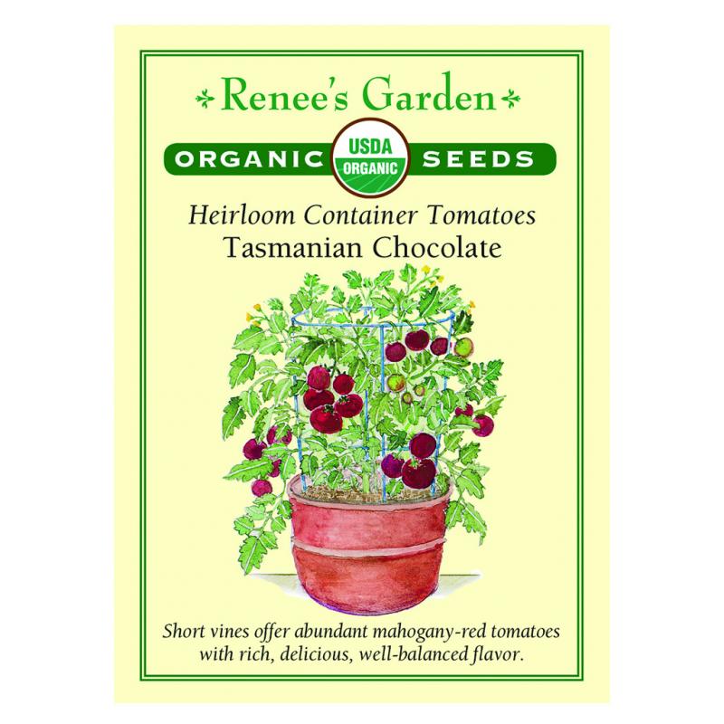 | Strong-yielding, short, sturdy vines bear heavy crops of beautiful, plump, mahogany red faintly striped tomatoes with delicious, well-balanced flavor. A perfect variety to grow in containers or small space gardens. Tasmanian chocolate tomatoes are heavy for their size, extra juicy and perfect for BLTs, sliced for salads or enjoy in good old-fashioned tomato sandwiches. | |