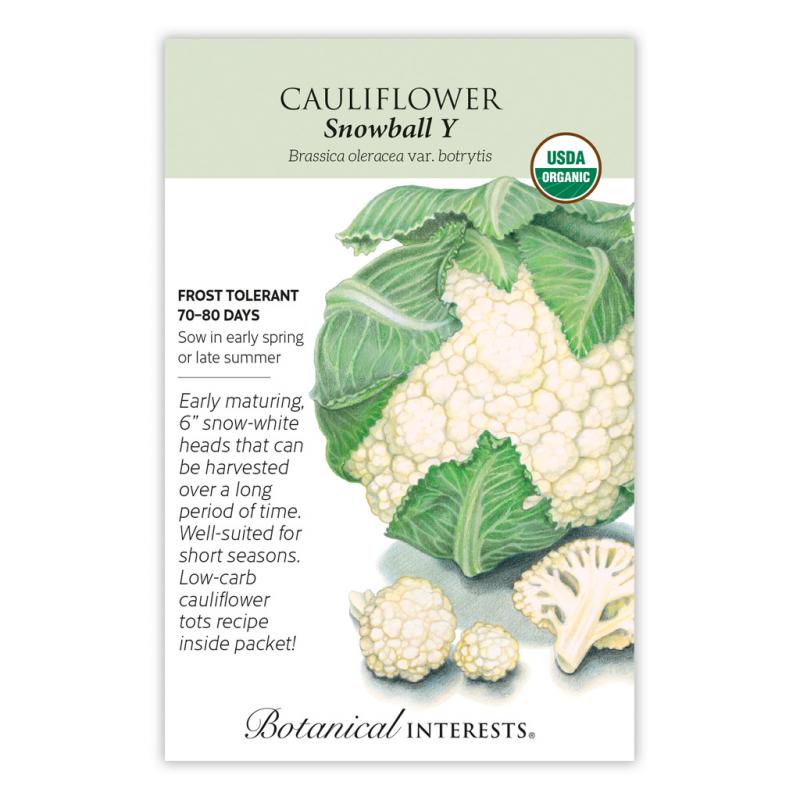 | Flavorful, 6" snow-white heads in just 70 to 80 days means 'Snowball Y' is successful in short-season areas. The leaves naturally curl nicely around the heads providing self-blanching and protection from sun scald. Mature heads hold well in the garden, so they don't all have to be picked at once. |