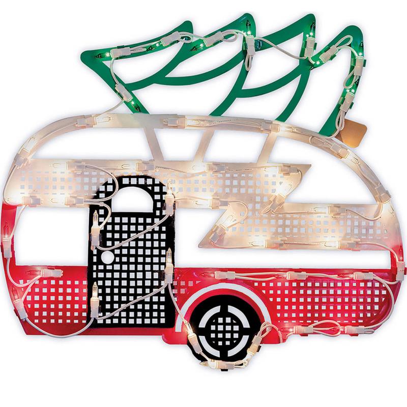 Shimmering Christmas Camper with Tree window decoration with 10 clear lights. Perfect window decoration for Christmas.