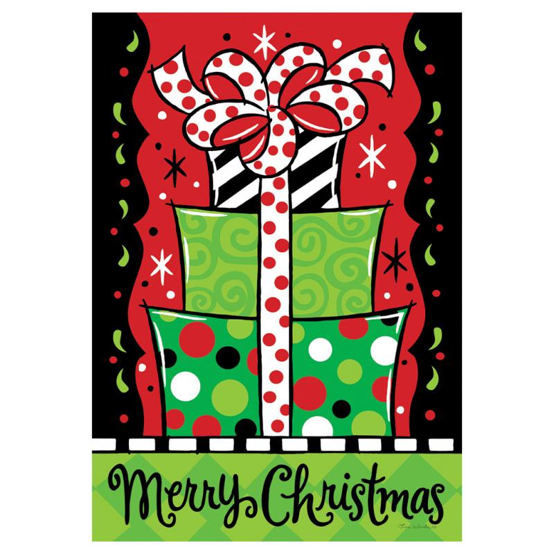 Description: This Gift Stack - Merry Christmas Large Home Flag from Custom Decor welcomes you in the season. It is one of their gorgeous double-sided flags, proudly printed here, in-house in the USA! Each flag is printed using fade-resistant ink on luxurious, velvety, soft, heavyweight fabric, creating a beautiful drape showcasing its stunning design.