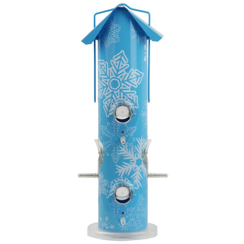 A cheerful addition to any yard, the Perky-Pet Snowflake Metal Tube Wild Bird Feeder offers six ports for your birds and an easy-to-clean design for you.