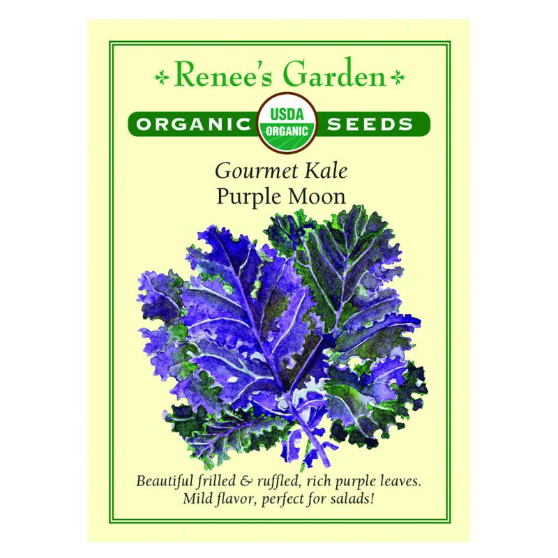 Description: Purple Moon has beautiful frilled & ruffled, deep purple leaves that are loaded with great flavor & super nutrition. The plants germinate and grow vigorously, and can be harvested over a long, productive season. Purple Moon has a mild and nutty flavor that is perfect for fresh salads or quick cooking.
