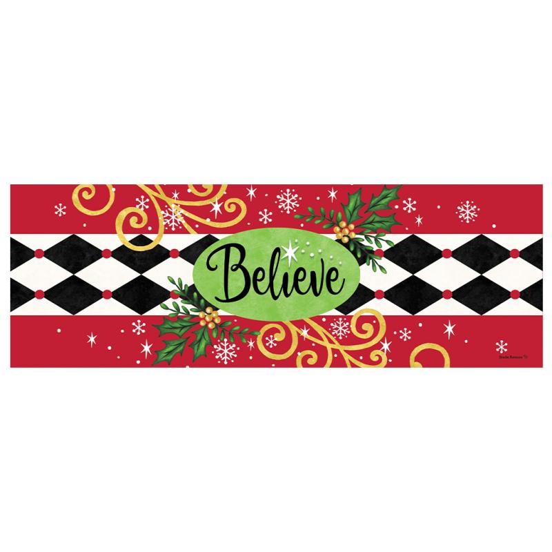 Description: Believe-Signature Sign from Custom Decor is printed in the USA. It is printed with 15”x 5” PVC signature signs that are perfect for adorning any garden with colorful, beautiful designs. Each is UV-cured for excellent weather-resistant quality and slides seamlessly into our exclusive wrought iron Signpost. Signposts are sold separately.