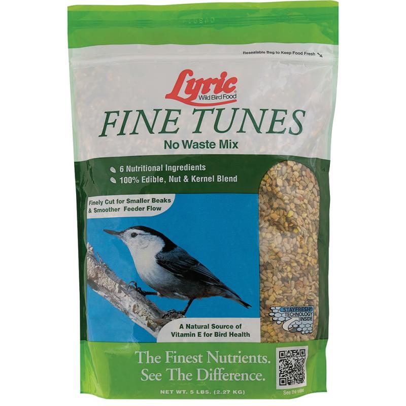 Description: 100% edible nutrition – no waste, no fillers, no weeds. It is a nutritious blend of nuts and kernels, finely-cut for easier feeding and smoother flowing in bird feeders. The fine-cut mix is easier to use and easier to eat. All shells and hulls are removed, and the mix contains no fillers. Fine Tunes is a food all songbirds, especially smaller beaked birds, will truly enjoy! Contains sunflower kernels, almonds, roasted peanuts, pistachios, hulled white proso millet and pumpkin kernels.
