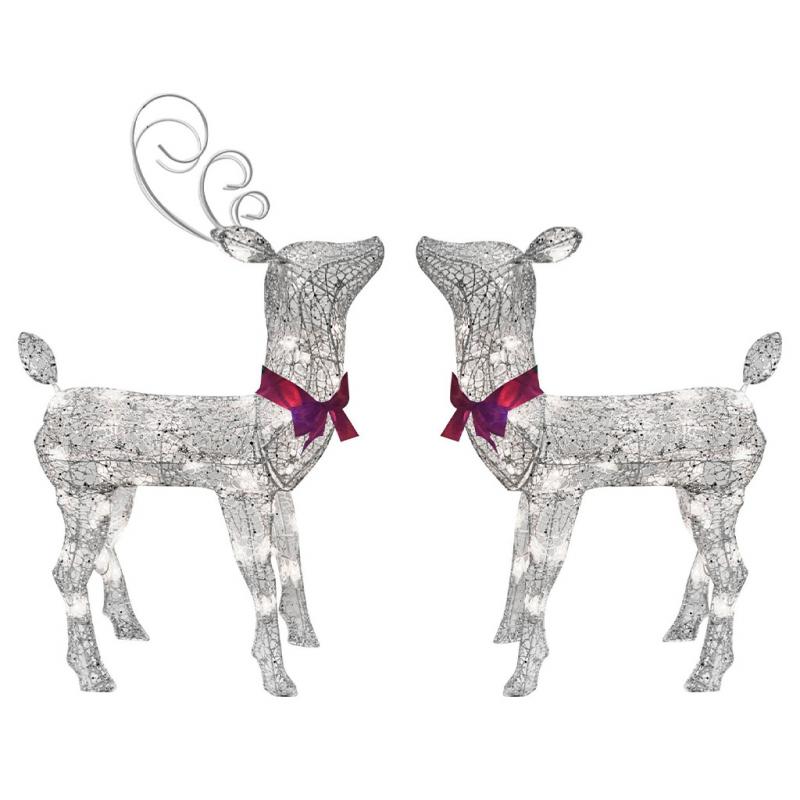 Deer Small Deer Morphing Silver Set of 2 with 50 White LED