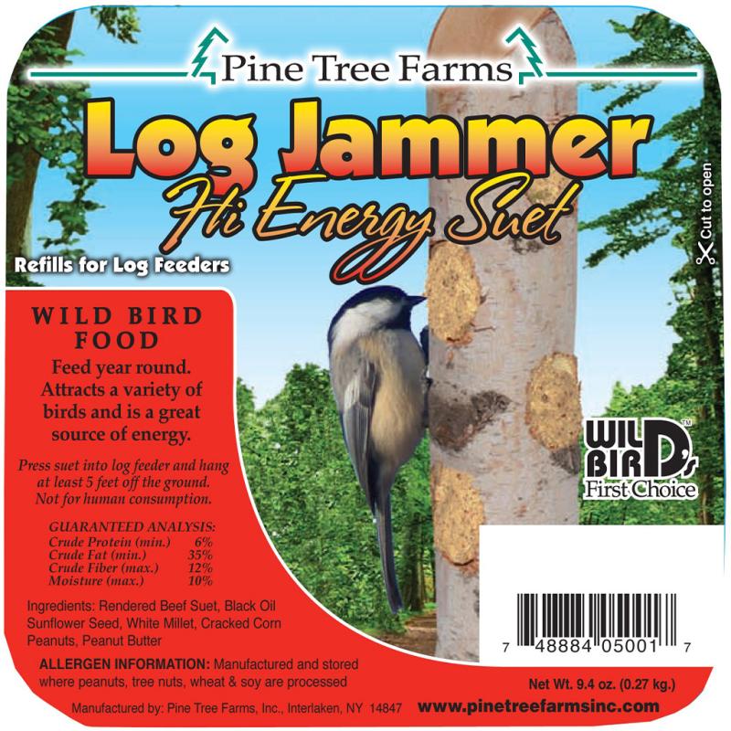 | Log Jammer Suet Plugs attract a variety of birds and are a great source of energy. Plugs are designed for easy loading into Log Jammer feeders. Contains rendered beef suet, black oil sunflower seed, white millet, cracked corn and peanuts. 4 plugs per package. |