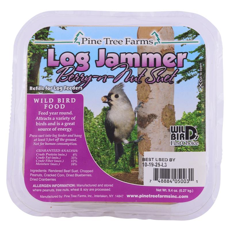 | Log Jammer Suet Plugs attract a variety of birds and are a great source of energy. Plugs are designed for easy loading into Log Jammer feeders. Contains rendered beef suet, chopped peanuts, cracked corn, dried blueberries and dried cranberries. 4 plugs per package. |