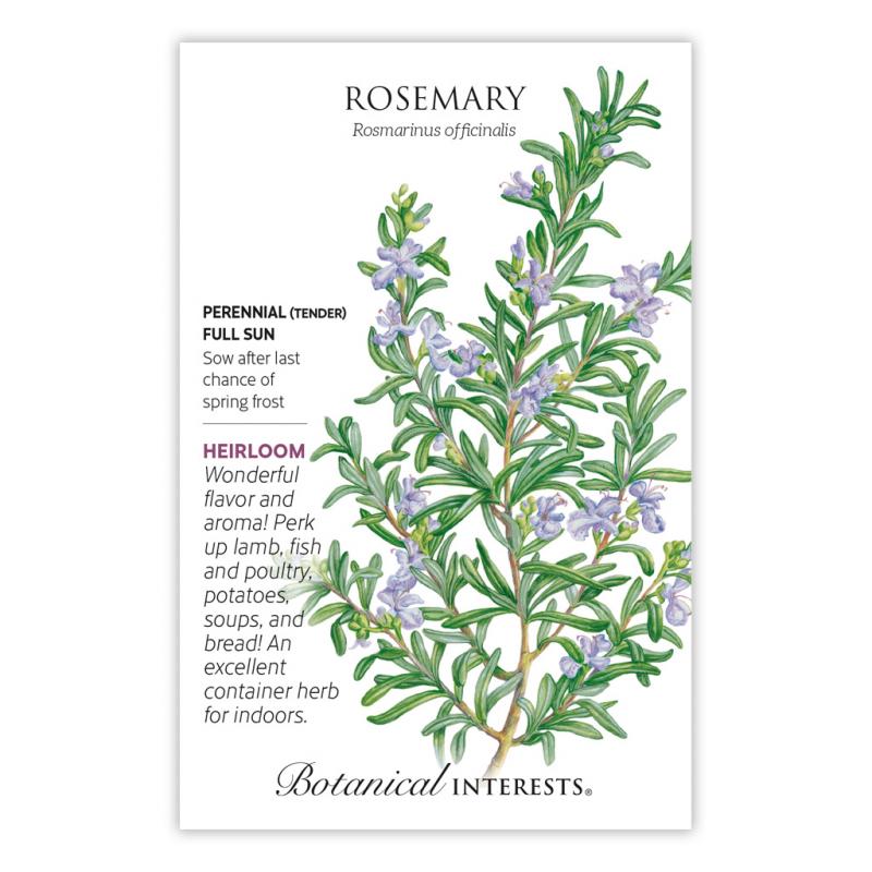 | Fall in love with the wonderful aroma of this versatile herb. It complements meats and vegetables, brings its unique, piney flavor to breads, and blends well with other herbs. A beautiful ornamental, it grows well in containers, and pollinators love the lavender flowers. |