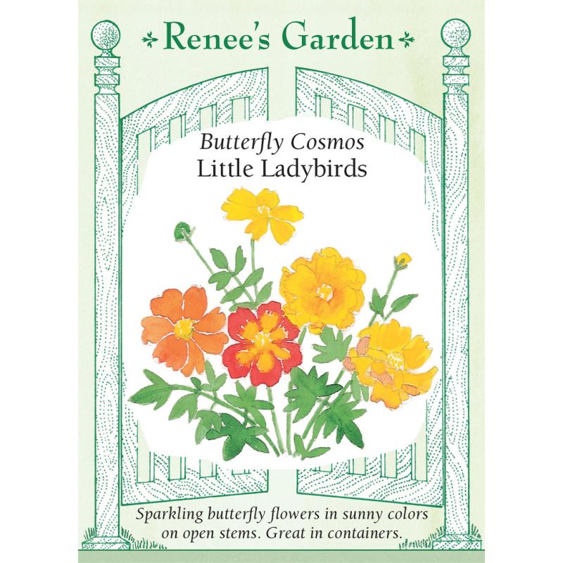 | (Cosmos sulphureus) These beautifully different Little Ladybirds Cosmos are carefree bloomers with jaunty, sparkling, semi-double flowers on short, open branching plants that spread as wide as they are tall. The bright colored blossoms shine in wonderful crayola orange, clear butter yellow and rich scarlet. No pastels here, just warm sunny colors on pretty plants that attract butterflies like magnets and fill patio containers and summer beds and borders with cheerful season-long charm. |