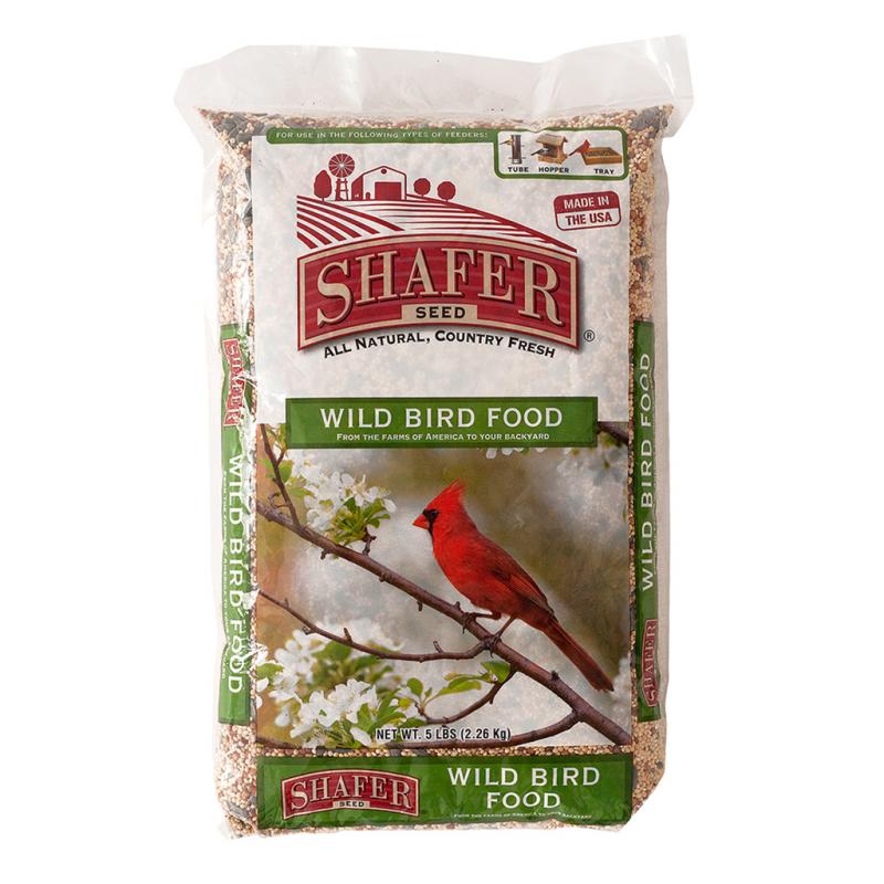 Description: Shafer Seed's Wild Bird Food is formulated to attract a wide variety of Songbirds. This blend of Sunflower, Millet, and Milo will attract your favorite Songbirds year round: - in the Winter when natural seeds are scarce, - in Spring and Summer for hatchlings, - and in Autumn to give energy to the migrating birds. Shafer Seed's Wild Bird Food is a great value blend and will keep them coming to your backyard for more.