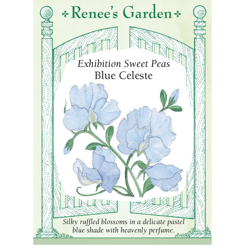 | (Lathyrus odoratus) EXCLUSIVE - The delicate soft shade of Celeste’s silky ruffled blooms reminds me most of the wonderful pale blue of my favorite spring iris. Blue Celeste’s alluring pastel blossoms are very perfumed and bloom abundantly, 4 to 5 to a stem. They make entrancing vase flowers with lovely, luminous color, fragrance, and form. You’ll have lots to cut as this British-bred specialty sweet pea offers a strong performance in the garden. These sweet blue flowers hold the eye and heart. |