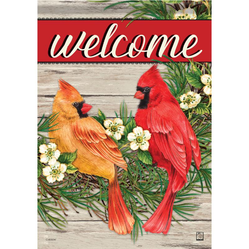 Description: The Cardinal Wreath Welcome Home Flag measures 40" x 28". The Carson flags feature their revolutionary Dura Soft™ fabric, which is remarkably soft yet highly durable, enhancing each design's rich, vibrant colors. Set your store apart by selling FlagTrends™, where all messages are readable from both sides! One touch is all you need to "Feel the Difference."