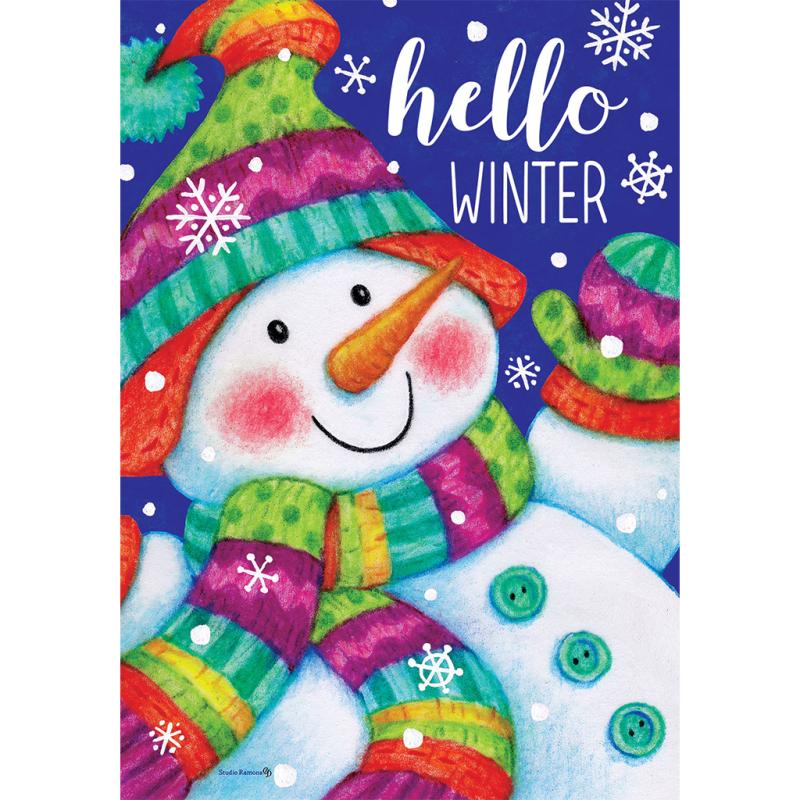 Description: This Hello Winter Snowman Large Home Flag from Custom Decor welcomes you in the season. It is one of their gorgeous double-sided flags, proudly printed here, in-house in the USA! Each flag is printed using fade-resistant ink on luxurious, velvety, soft, heavyweight fabric, creating a beautiful drape showcasing its stunning design.