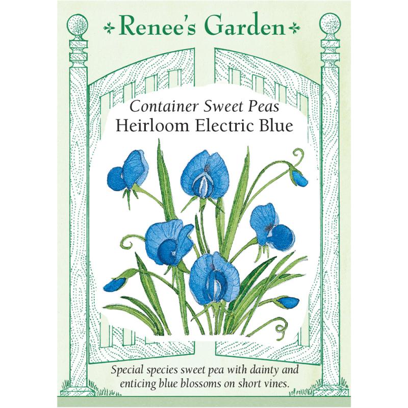 | (Lathyrus sativus azureus) EXCLUSIVE - We are proud to offer this rare and unusual species of sweet pea for home gardeners. The dainty little flowers are an exquisite glowing blue color, some with rose-touched throats. The abundant single-blossom flowers shine out like jewels against lushly tangled grassy foliage and gently curling tendrils. This long-blooming vining beauty reaches 3-4 feet tall and makes an excellent garden accent in big pots with a short trellis, tumbling over a low wall, or scrambling enticingly up a fence. |