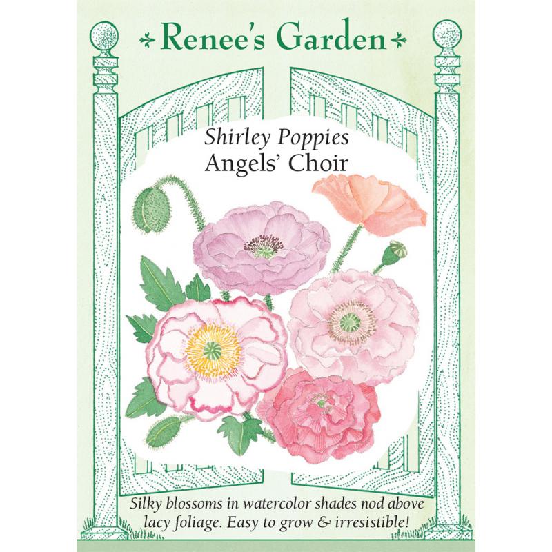 | (Papaver rhoeas) This award-winning combination of silken-petaled, double poppies features shimmering watercolor shades including cream, apricot, peach, coral, lavender, pink and bicolors and picotees. It took breeders years to develop these lustrous colors. Exquisite in the garden as the blossoms sway gracefully on nodding 3 foot tall stems above frothy gray-green foliage. These easy-to-grow and irresistible flowers are the perfect way to welcome the joys of spring and other words to fill. |