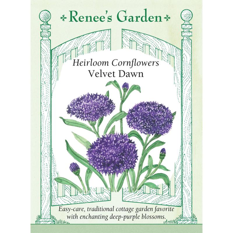 | (Centaurea cyanus) A classic cottage garden favorite in an enchanting shade of rich, deep purple. Velvet Dawn’s 1 1/2-inch dark, thistle-shaped flowers stand out against densely branching, blue-green foliage. They always attract and feed happy bees and butterflies. These are lovely, carefree, easy-to-grow, weather-tolerant flowers that will bloom vigorously and gladden your heart throughout spring and early summer. Cornflowers, also known as Bachelor Buttons, were traditionally used as lapel corsages! |
