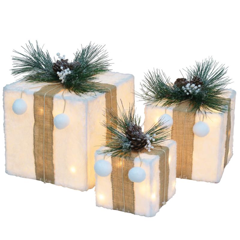 3-Stacked White Joy Gift Boxes Cool White LED Lights