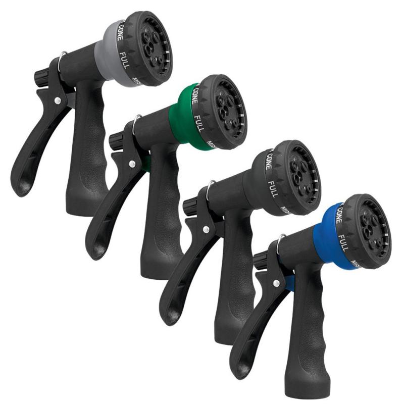 | The Orbit® Hose End Plastic Turret Nozzle is a rear-trigger nozzle with seven spray patterns to meet a variety of watering needs. The spray options include full, mist, jet, shower, flat, center, and cone patterns. The 7-Patterns can easily be changed with the click of the soft turret dial. |