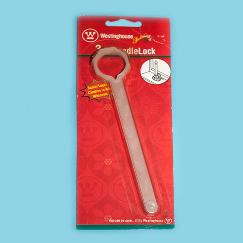 Candle lock has a heavy plastic construction tab that secures the candle to the window sill. Great to use with battery and electric operated candles.