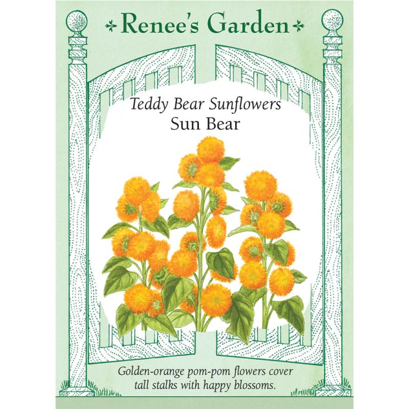 | This stunning sunflower bursts into bloom with a profusion of super double, 5-inch golden-orange flowers that have a plush texture like a favorite teddy bear. The straight, tall 5–7-foot stalks are covered with large, bright blooms from top to bottom. Sun Bear sunflowers are exceptionally long-blooming, and their sturdy flowers hold their color. A fun and cheerful addition to any garden, it's also great for cutting and highly sought after by birds, bees, and pollinators. |