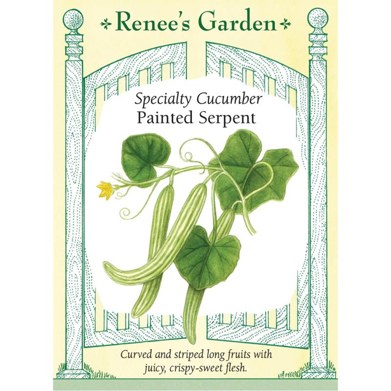 | Enjoy long harvests of cool cucumber-like fruits all season! Originally from Armenia, these long, curvy fruits are not actual cucumbers but melons. The crispy, white flesh is never bitter, and the pretty striped skins do not need peeling. Painted Serpent thrives in hot, humid weather, yielding consistent large harvests of 10-12-inch-long, deliciously juicy fruits to enjoy fresh from the vine. Cut into decorative scalloped slices, they are pretty as a picture! |
