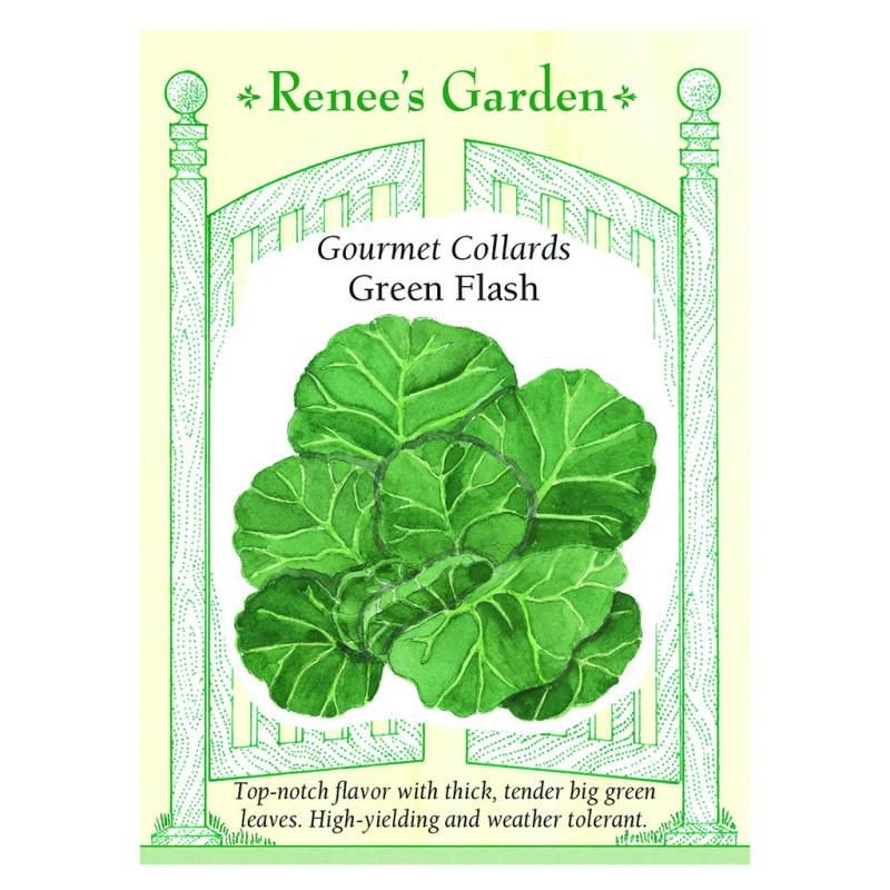 | Easy to grow, Green Flash forms dense, 18-inch-tall rosettes of thick, tender, big paddle-shaped leaves. This top-notch variety offers uniformity, vigor, high yields, and bolt resistance for rapid regrowth and longer, more dependable harvests. Cut the handsome leaves often to enjoy their flavorful, sweet taste as succulent cooked greens. Mild, nutty-tasting collards are one of the most fiber and vitamin-rich vegetables you can grow in your home garden. |