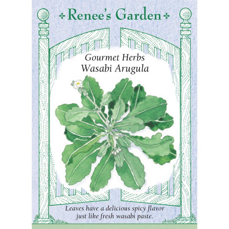 | (Diplotaxis erucoides) A unique wild arugula, Wasabi’s leaves taste just like the complex, spicy flavor of freshly made wasabi paste. These delicious little plants grow quickly and easily, forming pretty leafy rosettes. More weather tolerant than other varieties, you can harvest whole plants or pick individual piquant leaves for zesty accents to everyday meals. When plants send up flower stalks, the little white blossoms are edible; use both leaves and flowers in salads, sandwiches, sushi, pasta and barbecue. |