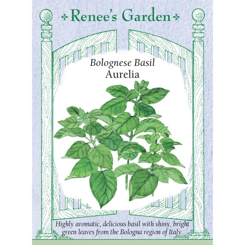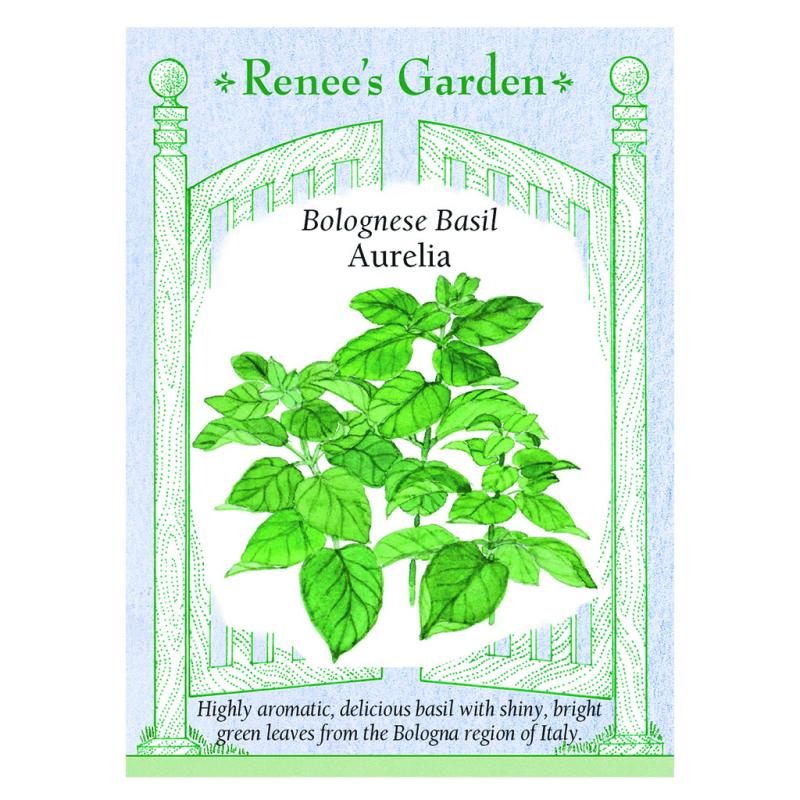 | (Ocimum basilicum) This is the strain of basil our favorite Italian seed grower produces for his local home market in the Bologna region. Aurelia offers classic sweet basil flavor with especially rich spicy undertones. Plants grow vigorously and branch early into heavy sprays of big shiny green leaves with a complex aromatic fragrance. Aurelia pairs beautifully with summer veggies, pasta, rice, chicken and pork dishes. Totally terrific with tomatoes and heavenly for pesto. |