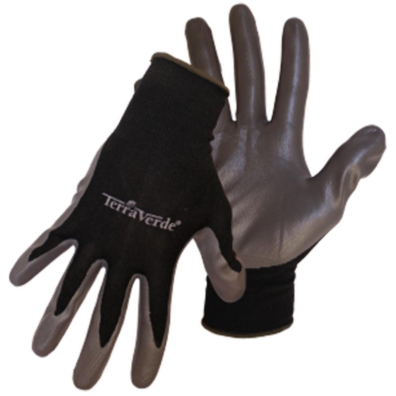 Bellingham Blue Work Gloves have a seamless, 10-gauge, polyester/cotton knit liner, ergonomic shape, and textured rubber palm. Great grip wet or dry. Gray and blue.