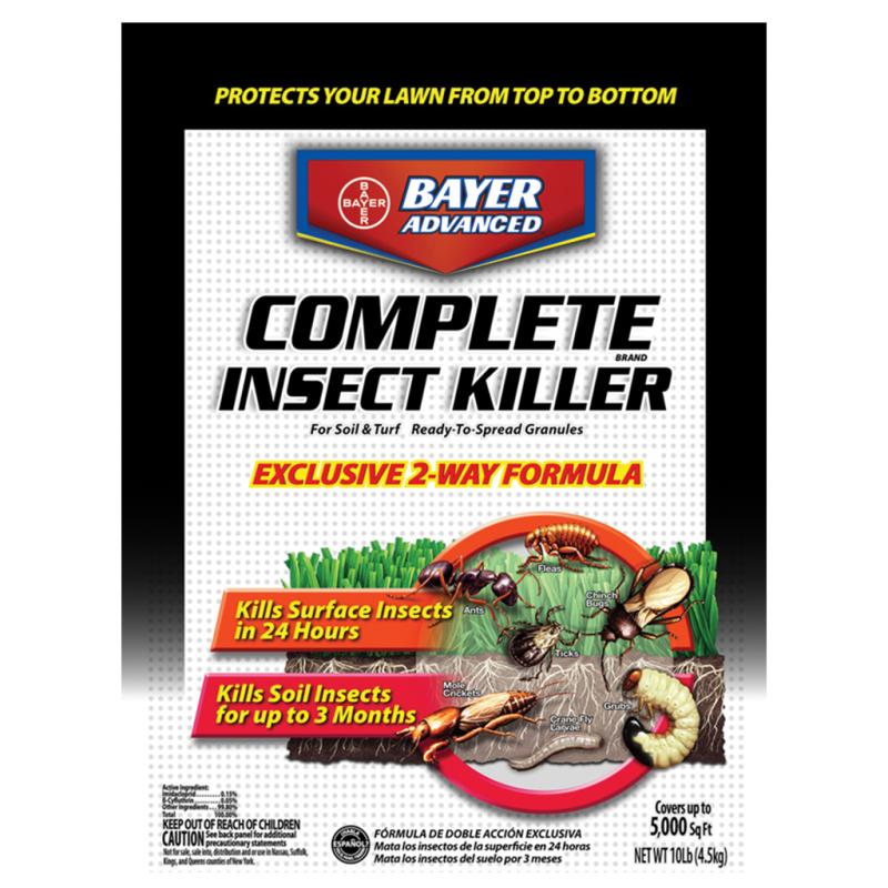 | Complete Insect Killer for Soil and Turf Liquid is an exclusive two-way formula that controls both surface and soil insects. Kills surface insects for up to three months. Kills the most common lawn pests including ants, fleas, ticks, European carne fly larvae, grubs, mole crickets, and more. Active ingredients: 0.15% imidacloprid, 0.05% B-cyfluthrin. Restricted in: Nassau, Suffolk, Kings and Queens counties of NY. |