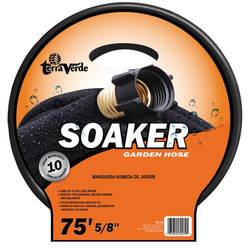 Description: Soaker Hose is an eco-friendly way to water. Perfect for gardens, around shrubs, flowerbeds, and walkways. Fast and easy watering uses up to 70% less water. Even flow seeping action soaks the root zone of the plant efficiently with a multi purpose hose that can be used above or below ground. 10-year warranty. Black.