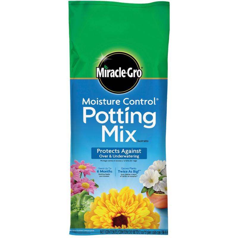| Moisture Control Potting Mix protects against over and under watering. Absorbs 33% more water than basic potting soil. Feeds up to 6 months and grows plants twice as big. * Contains sphagnum peat moss, coir and a wetting agent. |