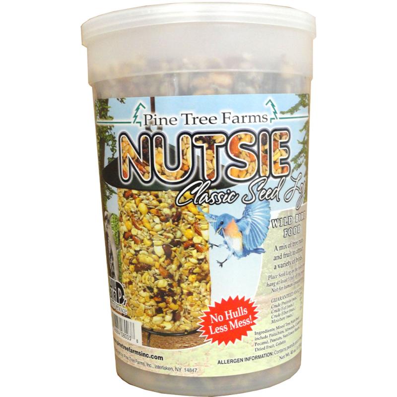 | The hull-less, less mess Nutsie Classic Seed Log is made of nuts and dried fruit and attracts a variety of wild birds. Contains tree nuts, sunflower hearts, pecans, dried fruit, peanuts, and gelatin. 40 oz. | |