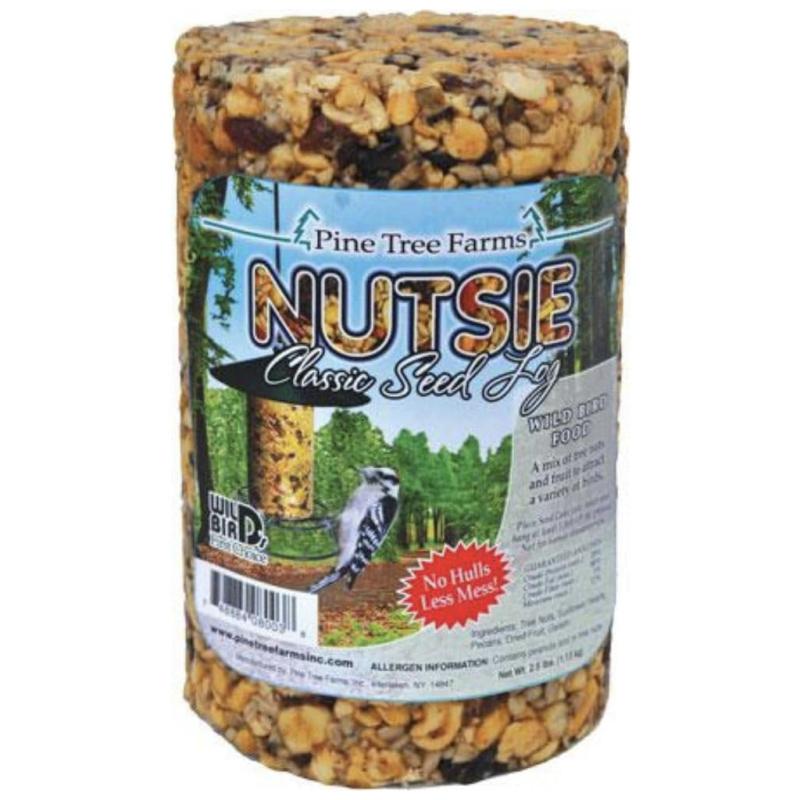 | The hull-less, less mess Nutsie Classic Seed Log is made of nuts and dried fruit and attracts a variety of wild birds. Contains tree nuts, sunflower hearts, pecans, dried fruit, peanuts, and gelatin. 40 oz. | |