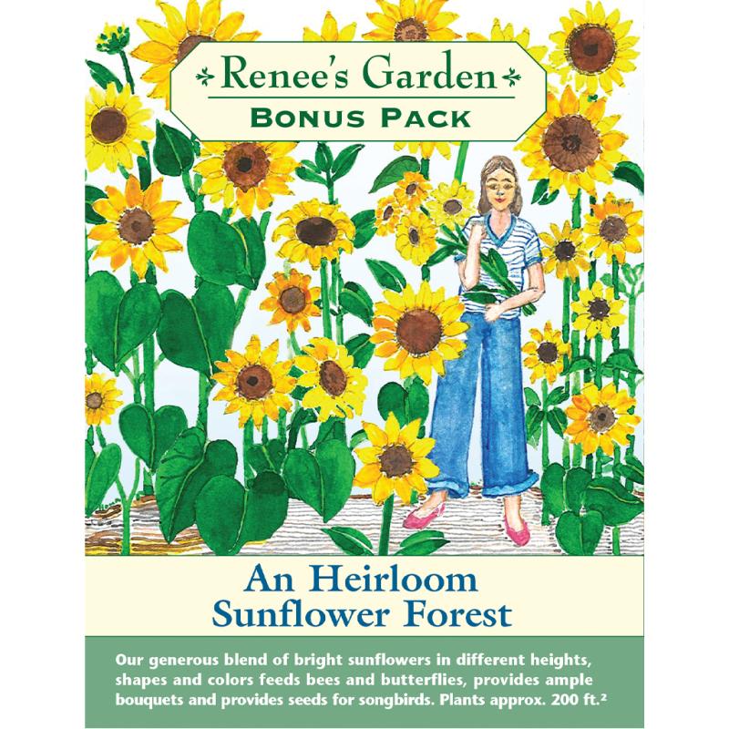 | This blend of tall, large flowering single sunflowers that grow like sunny beacons, mixed with slightly shorter, branching sunflowers that offer clusters of bright flower faces in many color combinations. The effect is like a forest of flower faces in all heights, shapes, and colors. | |