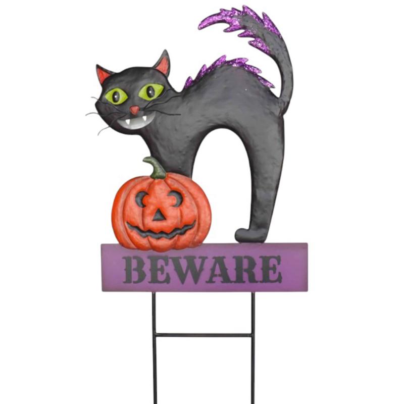 Metal Stake Cat / Pumpkin Beware
