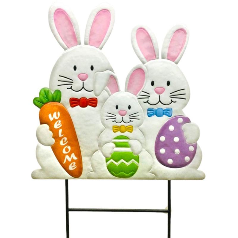 Metal Stake Easter Bunny Family
