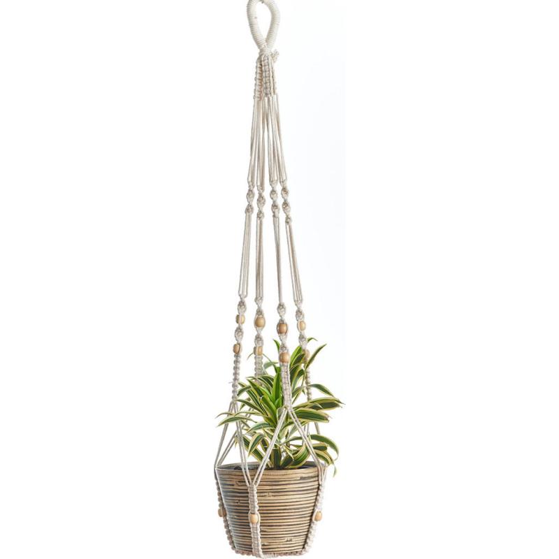 No tassel hanger in woven cotton with decorative beads. Holds 7" - 12" pots.