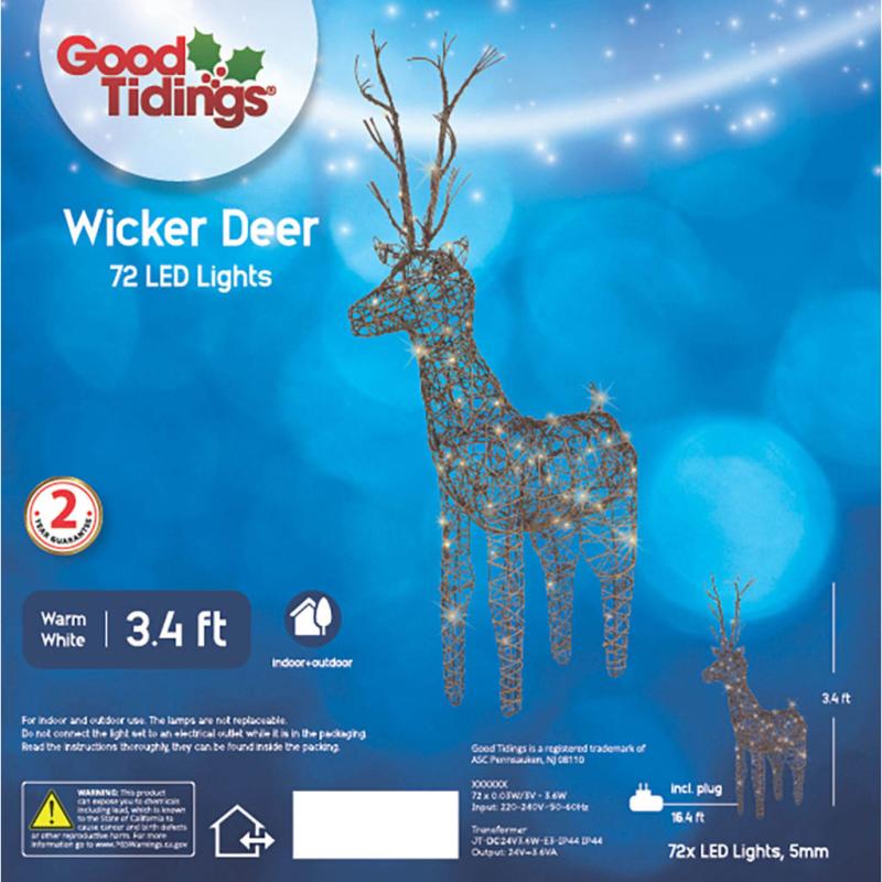 What is a winter scenery in your garden without a deer? This wicker deer with warm white lights will be a great show piece in your garden and it will bring warmth to your garden during the dark cold winter months. Features 72 Warm White LED lights.